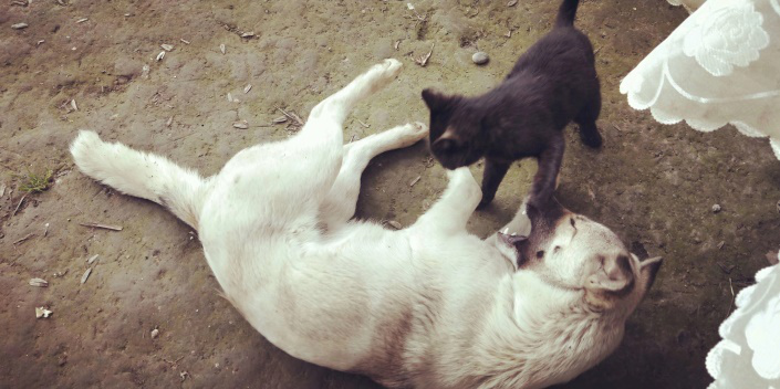 在這里貓和狗成了玩伴,時(shí)常在一起瘋鬧!
